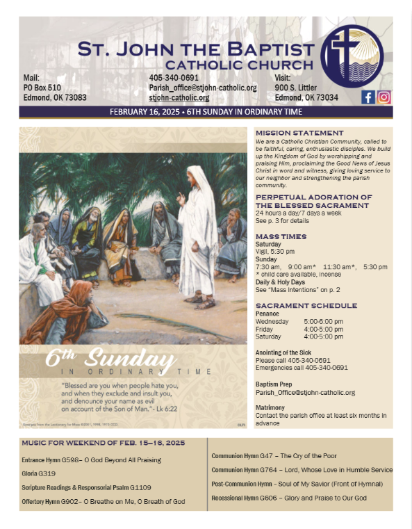 upcoming events or notices. If you do not want to receive information, please contact the Parish Office.